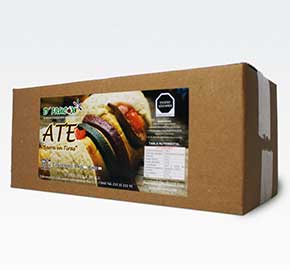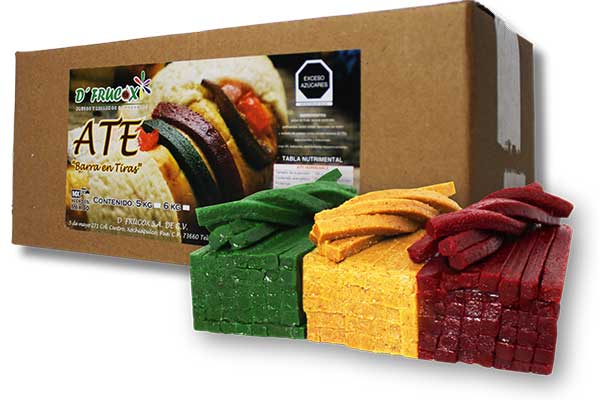 Descripción: Barra de fruta, elaborada con un 60% de pulpa de fruta natural y azúcar de consumo directo, usada como decoración en productos de repostería y panificación, principalmente en la rosca de Reyes.
