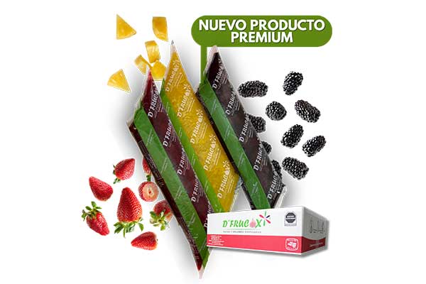 Descripción:Es un gel suave y brillante, con color y sabor característico de la fruta, ya que está elaborado con el 30% de fruta en trozo.